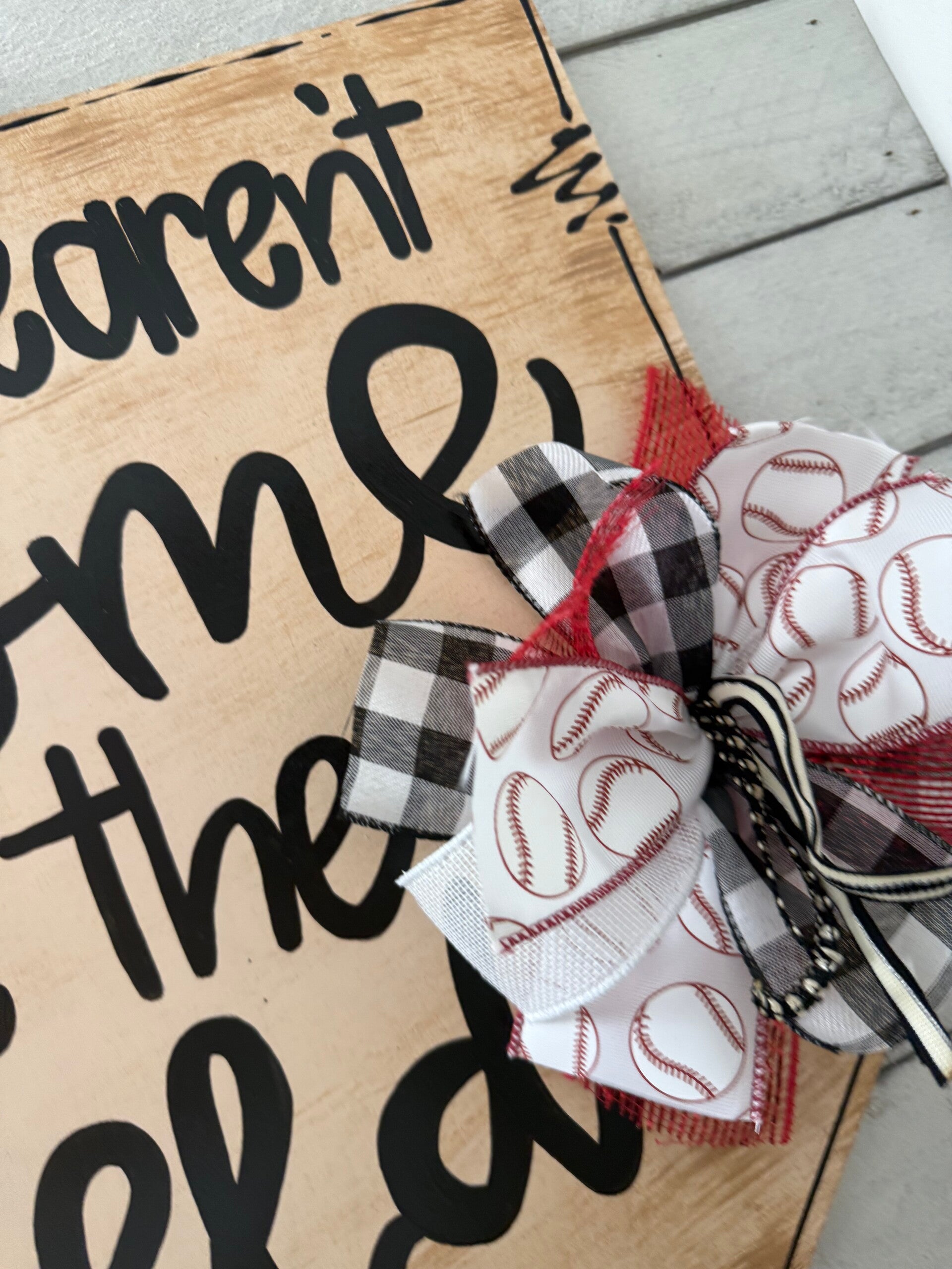 This one is for the baseball/softball parents, spending their time at the ballfield! Bow is optional. This is cut from 1/4 inch maple plywood, sanded and painted with love! 23 inches x 22 inches.
