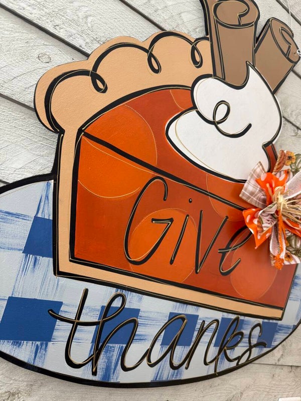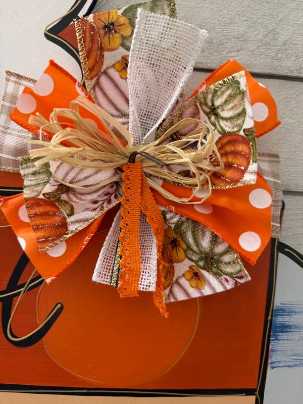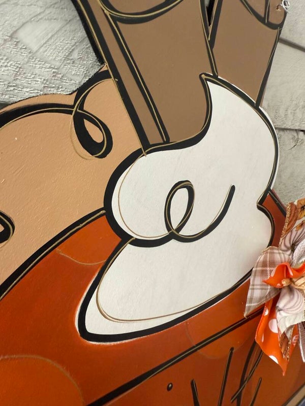 Beautiful door hanger decorated with cozy fall colors and gold accents. This is cut from 1/4 inch maple plywood, sanded and painted with love! Measured at 24x 25inches. Can be customized if desired. Please include any specific requests in personalization request.